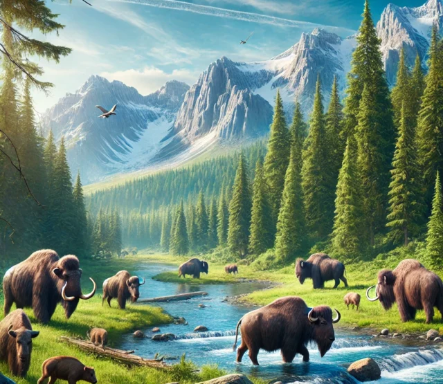 Long before wagons cut their ruts across the Northern Plains, this corridor was a natural passage for wildlife. At the end of the Pleistocene, mastodons, giant bison, and other animals followed its gentle valleys and mountain-fed streams, avoiding the steep ridges nearby.